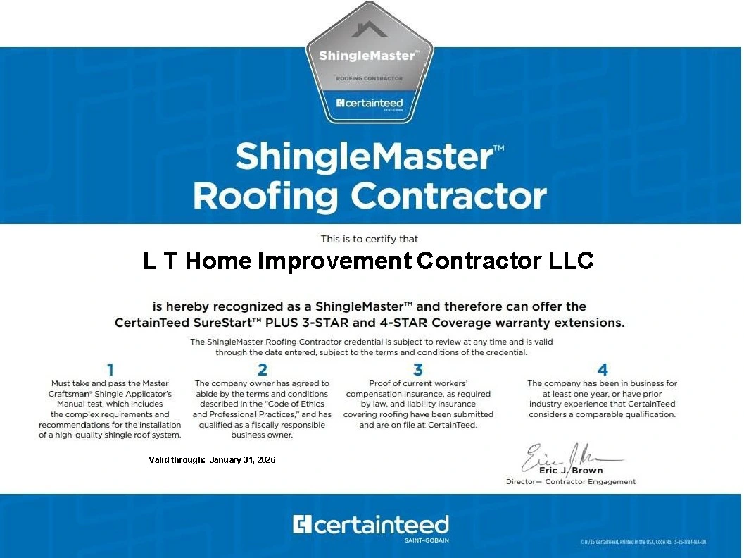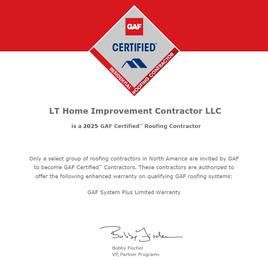 Choosing the right contractor makes all the difference. At LT Home Improvement LLC, we bring 25 years of experience, certified awards, full insurance, and a track record of 5-star Google and BBB reviews. Homeowners return to us for our professionalism, attention to detail, and commitment to long-term solutions, clear communication, and customer satisfaction — ensuring every project is completed safely, efficiently, and to the highest standards